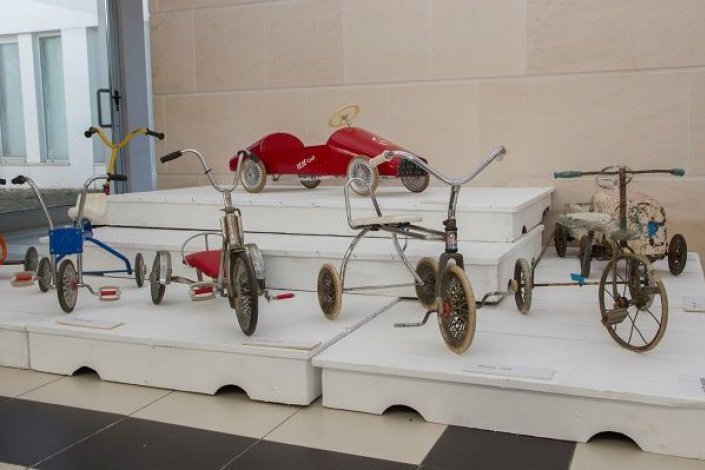 Na exposição «Pim, Pam, Pum», onde os objectos mais antigos remontam ao século XIX, há carrinhos, bonecas de trapos, instrumentos musicais, cavalinhos de madeira, livros infantis e pinturas.