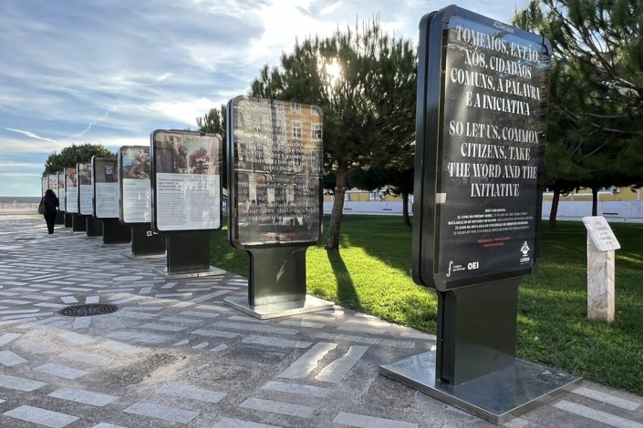 A exposição, que pode ser vista até ao dia 12 de Janeiro, celebra os 75 anos da Declaração Universal de Direitos Humanos e os 25 anos do Prémio Nobel atribuído a José Saramago, pretendendo também dar a conhecer a Declaração de Deveres Humanos.