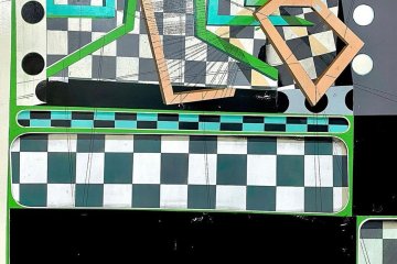 No Museu Arqueológico da Sociedade Martins Sarmento6 apresenta-se neste momento a exposição de Manuel Caeiro7 «A Relevância do Subúrbio», até 14 de agosto. O trabalho de Manuel Caeiro tem como base o construtivismo e relaciona desenho, arquitetura e pintura. A representação do espaço neste artista efetua-se a partir de formas que desdobram ritmos e modulações espaciais através das repetições e sobreposições de camadas que evidenciam um carácter escultórico. A compreensão da noção de planimetria assinala uma obsessão pela ordenação do espaço e uma indagação sobre o espaço visível, mostrada através de jogos de sombras, profundidades e densidades de cor.