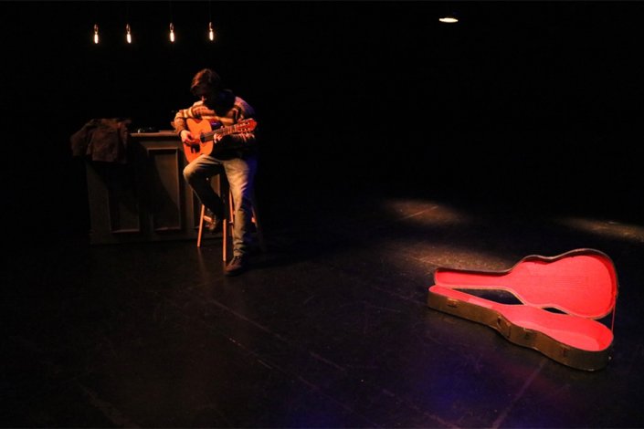 O «percurso dos fracassados numa sociedade talhada para o sucesso» é como o encenador e intérprete, Tiago Moreira, compreende o monólogo O Homem da Guitarra, do escritor e dramaturgo norueguês Jon Fosse. A peça acompanha um músico de rua em seu percurso de precariedade e solidão, e coloca-nos a reflectir sobre a arte e a busca de sentido num mundo desconcertado.