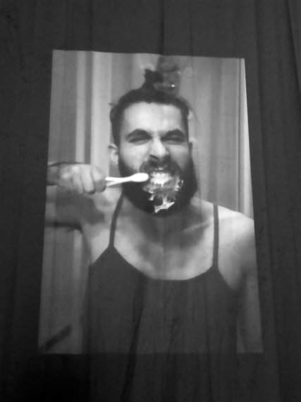A exposição «Deturpado» de Joana Margarida Calhau4 vai estar exposta na Igreja de São Vicente5 em Évora entre 12 de janeiro a 13 de fevereiro de 2022. «Nesta exposição é desenvolvida uma relação entre a Fotografia, a Performance e o Vídeo…», esclarece o texto da exposição. A foto performance, que publicamos, revela «pequenos pormenores do quotidiano como lavar os dentes, tomar banho, cortar o cabelo, entre outros».