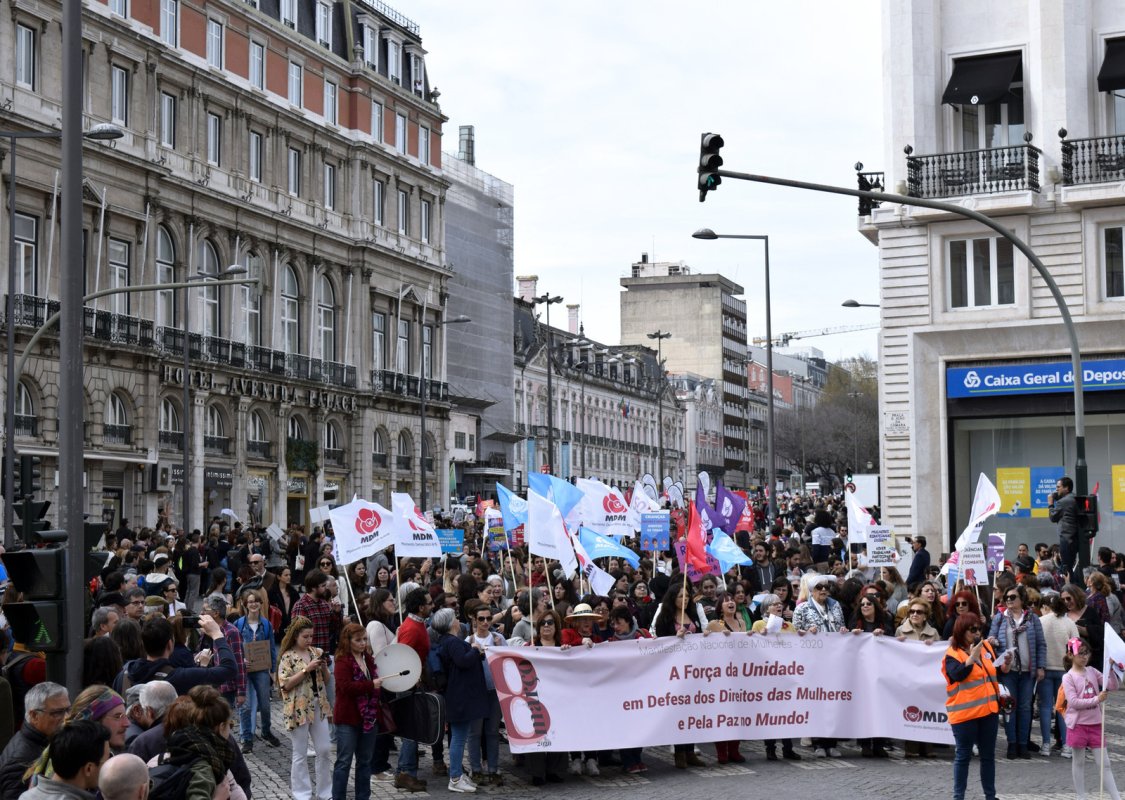 A manifestação promovida pelo Movimento Democrático de Mulheres (MDM), reuniu mulheres e homens contra a desigualdade, a discriminação e a violência, por novas políticas a favor da igualdade e da justiça social.