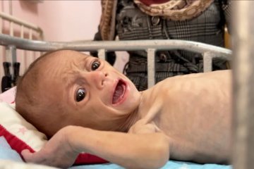 A correspondente da BBC filmou os sinais inconfundíveis de desnutrição avançada no corpo de Siwar. A cabeça que parece demasiado grande para o seu corpo. Os braços e as pernas magríssimos. As costelas que lhe pressionam a pele quando tenta chorar. Os grandes olhos castanhos que acompanham cada pequeno movimento da mãe.
