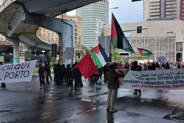 Ao logo da jornada de mobilização, que contou com a participação de movimentos sociais genoveses e manifestantes vindos de Roma, Florença ou Bolonha, vincou-se a mensagem de solidariedade com a Palestina e com a resistência do povo palestiniano à ocupação sionista.