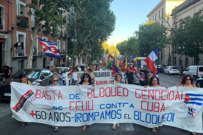 Sob o lema «A luta não acabou», a manifestação foi convocada pelo Movimento Estatal de Solidariedade com Cuba (MESC), que reúne mais de 60 organizações de todo o Estado espanhol, visando expressar o apoio à Revolução Cubana e denunciar o bloqueio económico, financeiro e comercial que os EUA impõem ao país caribenho, refere o portal cubainformacion.tv.