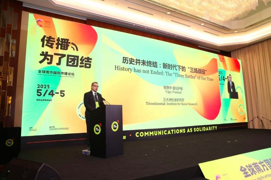 «O conflito imposto pelos Estados Unidos [à China] deve-se em parte ao declínio do controlo ocidental sobre a ciência e a tecnologia. Gradualmente, o controlo neocolonial sobre as finanças, recursos e ciência e tecnologia esgotou-se, mas a estrutura neocolonial mantém-se no que diz respeito ao controlo ocidental sobre os sistemas de armas e informações», disse Vijay Prashad, director do Instituto Tricontinental e editor-chefe do Globetrotter, na abertura da conferência «Comunicação como Solidariedade», organizada pela Escola de Comunicação da Universidade Normal da China Oriental, juntamente com outras entidades chinesas em Xangai.