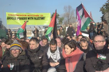 Num contexto em que «várias empresas bascas enriquecem à custa do genocídio sofrido pelo povo palestiniano», denunciou-se a sua cumplicidade com a ofensiva da ocupação israelita.