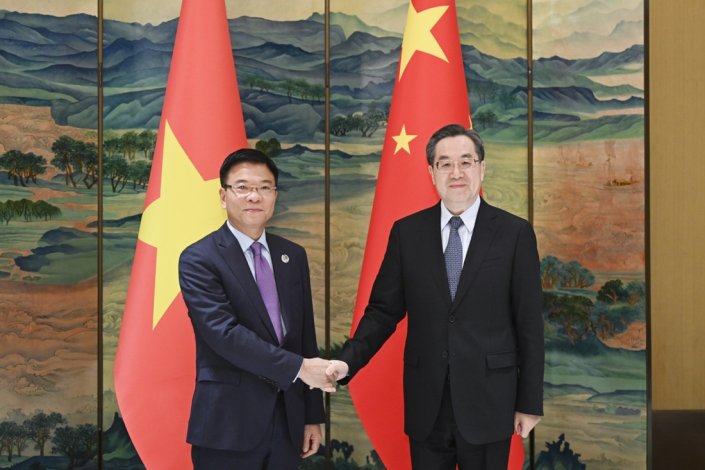 Dando as boas-vindas ao seu homólogo vietnamita, Ding Xuexiang disse que o governo do seu país encara sempre as relações com o Vietname como uma prioridade da sua política externa e que está disposto a aprofundar ainda mais a parceria de cooperação estratégica integral.