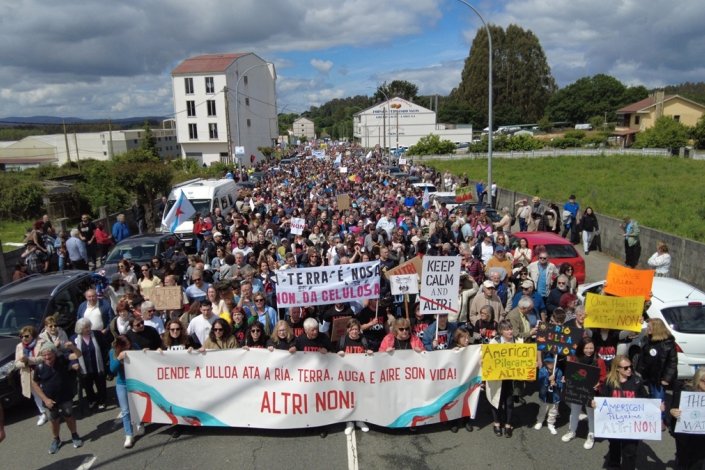 Com o lema «Desde a Ulloa até à ria, terra, água e ar são vida! Altri Não!», mais de 20 mil pessoas manifestaram-se, este domingo, em Palas de Rei (A Ulloa) para dizer «não» ao projecto de macro-celulose que a empresa portuguesa Altri pretende instalar na localidade, refere o diário Nós.