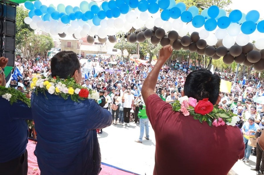 Na concentração gigante de ontem estiveram presentes o líder do Senado, Andrónico Rodríguez, Juan Carlos Huarachi, secretário-geral da Central Obrera Boliviana, o candidato presidencial equatoriano Andrés Arauz, entre outros representantes de delegações internacionais, sindicatos, organizações populares.