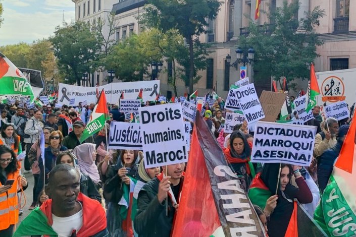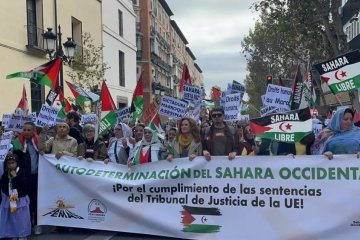 Em resposta à convocatória, realizada por associações solidárias em Espanha e pela diáspora saarauí, em conjunto com a representação da Frente Polisário neste Estado, os manifestantes exibiram bandeiras nacionais do Saara Ocidental e cartazes a reafirmar o direito do povo saarauí à independência.