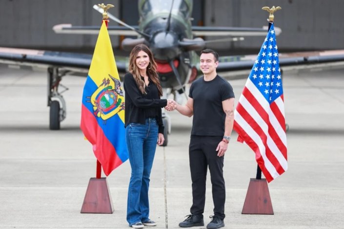 Noem aterrou na localidade de Manta (província de Manabí), precisamente o local onde há 16 anos foi encerrada uma base do Comando Sul dos EUA.