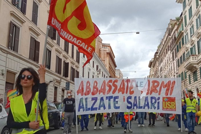 «Para a UE, o governo de Meloni e a oposição parlamentar, o aumento das despesas militares parece ser um ponto inquestionável», denuncia a USB, afirmando que «a transferência de recursos para o sector militar […] representa a solução que a UE identificou para fazer face à crise industrial».