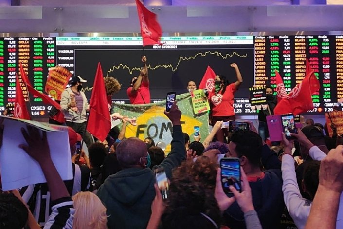 Acompanhados por Guilherme Boulos, dirigente político e coordenador do MTST, dezenas de manifestantes levaram cartazes para o interior do edifício da bolsa paulista, a B3, numa acção que, segundo refere a Rede Brasil Atual, visava «denunciar o aprofundamento da pobreza no Brasil», sublinhando que «a fome aumenta ante o enriquecimento de uma parcela cada vez menor da população».