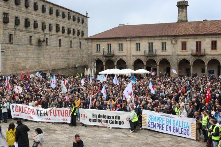 «Para uma Galiza viva, activa e consciente das suas capacidades, precisamos de um governo realmente comprometido com a sua obrigação de promover o uso, a presença e a disposição da língua, com um galego vivo», afirmou-se na Praça da Quintana, repleta de gente, no acto que pôs fim à mobilização.