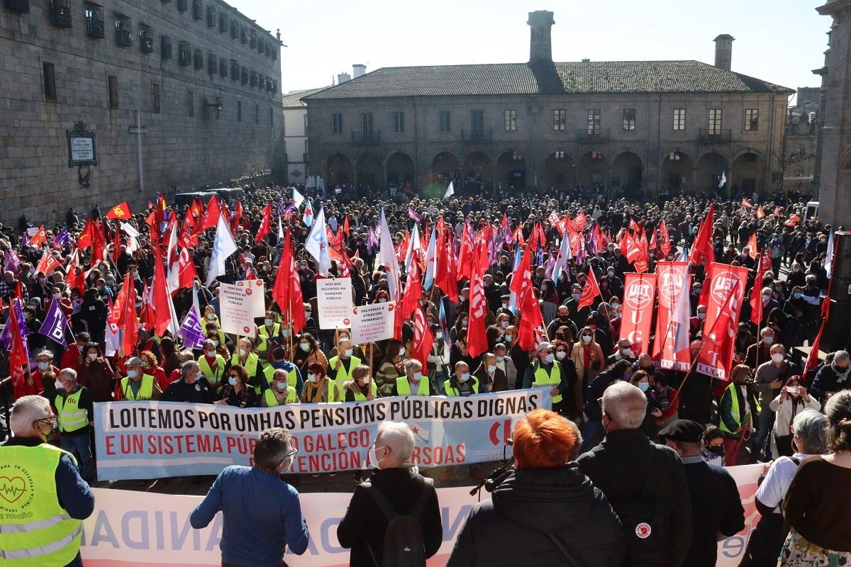 A mobilização partiu da Alameda, pelo meio-dia, e percorreu as ruas da capital galega até à Praça da Quintana. Os manifestantes denunciaram a deterioração dos cuidados de saúde, que, vinda de trás, se agravou com a pandemia, deixando em evidência a falta de funcionários e meios nos serviços.