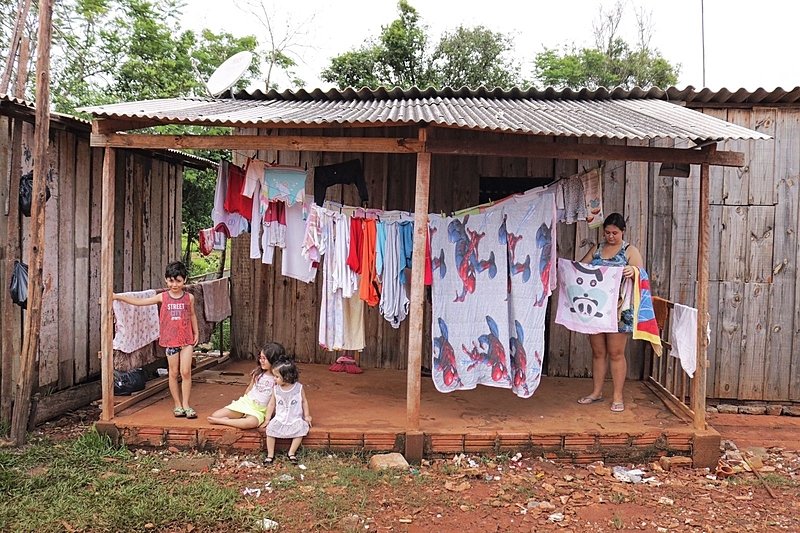 Aumenta o número de famílias em situação vulnerável que vivem em habitações precárias junto à fronteira com a Argentina. A Ocupação Bubas, no Sul do Brasil, tem uma população estimada de 8000 pessoas.
