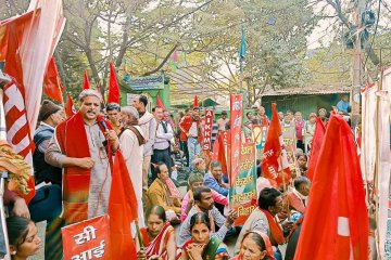 Operários e agricultores indianos unidos contra o esbulho neoliberal