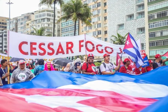 A Cimeira do Grupo dos Vinte (G20) começa hoje no Rio de Janeiro. Na antevéspera, mesmo debaixo de forte chuva, os movimentos populares que participaram no G20 Social fizeram uma grande marcha na orla marítima de Copacabana em protesto contra o genocídio do povo palestiniano na Faixa de Gaza.