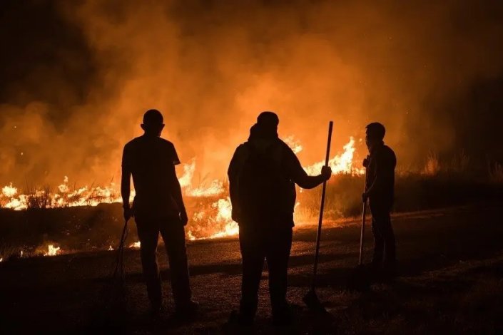 População junto a um incêndio na Galiza, a 16 de Agosto de 2025 CréditosElena Fernadez / Nós Diario