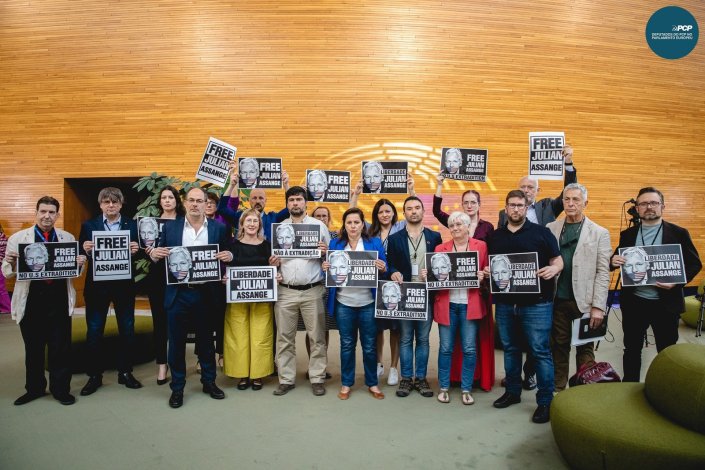 Também ontem, os deputados do PCP reuniram vários deputados de vários grupos políticos do Parlamento Europeu e apelaram à libertação de Assange. Nessa acção levada a cabo pelo comunistas portugueses, foi reafirmada a solidariedade com o jornalista e feito um protesto simbólico com um fotoprotesto. Segundo a nota publicada nas redes sociais o no processo em causa «não se pode dissociar dos processos de concentração da propriedade e do controlo dos meios de comunicação social por parte de transnacionais, a par do aumento da precariedade nas relações laborais dos jornalistas, que constitui uma séria ameaça ao pluralismo, à liberdade de imprensa, de expressão e de informação».