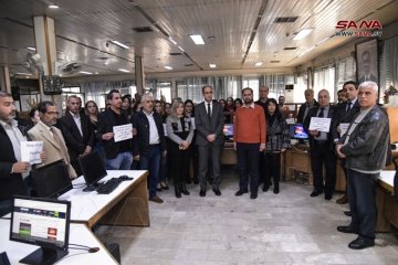 Na redacção da agência Sana, redactores, editores e outros trabalhadores também se juntaram para condenar os crimes israelitas e exigir o fim dos assassinatos de jornalistas em Gaza.