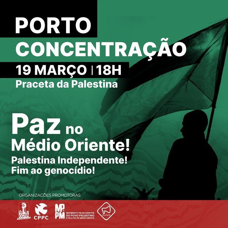 Convocada por MPPM – Movimento pelos Direitos do Povo Palestino e pela Paz no Médio Oriente, Conselho Português para a Paz e Cooperação (CPPC), CGTP-IN e Projecto Ruído – Associação Juvenil, a mobilização exige o fim do genocídio, a paz no Médio Oriente e uma Palestina independente.