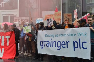 Em protesto contra esta situação, mais de uma centena de activistas pelo direito à habitação concentraram-se esta quinta-feira, em Londres, frente aos escritórios da Grainger, que é o «maior senhorio do Reino Unido», com mais de dez mil casas alugadas, e uma das empresas do imobiliário que pressionaram o governo para desbastar o alcance do projecto de reforma, depois de ter facturado mais de 100 milhões de libras (116,6 milhões de euros) só o ano passado.