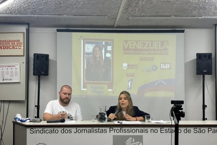 O auditório do Sindicato dos Jornalistas de São Paulo foi palco, esta segunda-feira à noite, do evento «Venezuela: os media e o papel da TeleSur», que contou com a participação da presidente da emissora venezuelana, Patricia Villegas.