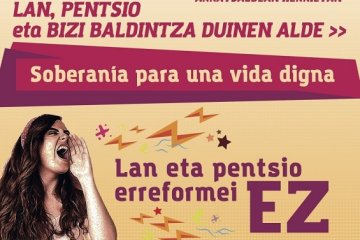 Cartaz da jornada de mobilização no País Basco, com o lema «Trabalho, pensões e condições de vida dignas. Não às reformas laborais e de pensões. Soberania para uma vida digna»
