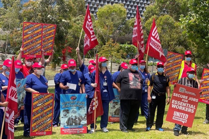 O protesto foi organizado pelo sindicato United Workers Union (UWU), abrangendo trabalhadores essenciais em duas das maiores unidades hospitalares da capital da Austrália do Sul, o Hospital Royal Adelaide e o Hospital Queen Elizabeth.