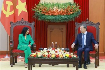 Ao receber a visitante, To Lam informou-a sobre os êxitos de 40 anos de renovação no país do Sudeste Asiático, e reafirmou que o Vietname irá dar continuidade a uma política externa de «independência, autodeterminação, paz, cooperação e desenvolvimento», refere a Vietnam News Agency (VNA).