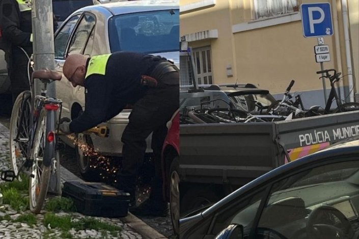 As denúncias começaram a chegar às redes sociais na tarde de terça-feira, dia 27 de Janeiro. Nas duas imagens partilhadas por mais de 50 utilizadores do Twitter (X), dois agentes da Polícia Municipal de Lisboa (PML) rebentam o cadeado de uma bicicleta estacionada ao lado de um candeiro de electricidade na freguesia de Penha de França. A bicicleta é posteriormente colocada numa carrinha de caixa aberta, junto a várias outras bicicletas que foram recolhidas pela polícia nesse dia, em toda a cidade.