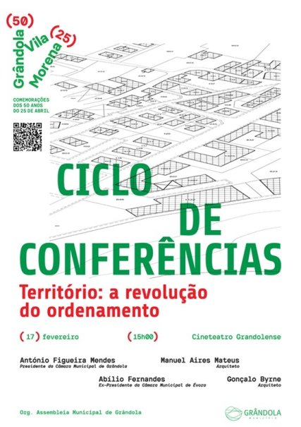O encontro está agendado para 17 de Fevereiro, às 15h, no Cineteatro Grandolense, e conta com a participação de António Figueira Mendes, presidente da Câmara Municipal de Grândola, Abílio Fernandes, ex-presidente da Câmara Municipal de Évora, e os arquitectos Manuel Aires Mateus e Gonçalo Byrne, refere a autarquia alentejana no seu portal.