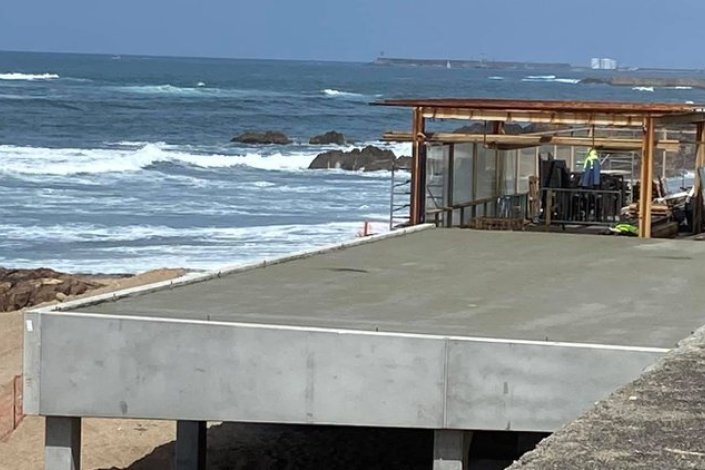 A obra em execução, na praia da cidade do Porto, está a edificar, em pleno areal, uma estrutura em betão. As populações foram surpreendidas com o início do empreendimento num local onde, no Inverno, o mar tem provocado estragos.