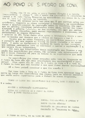Fac-símile do comunicado redigido em 23 de Maio de 1975, publicado no livro «Quando o povo ocupou o que era seu»    Créditos