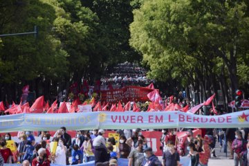 À cabeça da manifestação, num espaço limitado por uma faixa vermelha, eram visíveis delegações partidárias, como as do PS, PCP e BE, delegações sindicais, nomeadamente da CGTP-IN, e representações de juventudes partidárias, como a JS e a JCP.