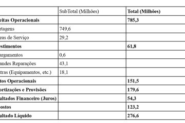 Reparem como o volume extraordinário de receitas (785) dá um resultado líquido ainda mais extraordinário de 277 milhões. Uma taxa de 35%, só possível de alcançar neste tipo de negócios (tipo PPP) com o Estado e através de contratos leoninos de concessão.