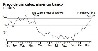 Segundo a mesma, «desde que o IVA zero entrou em vigor, a 18 de abril, o cabaz alimentar nunca tinha estado tão caro. A 15 de novembro, a cesta com 41 alimentos com zero por cento de IVA voltou a subir, ultrapassando, pela primeira vez, os 140 euros».