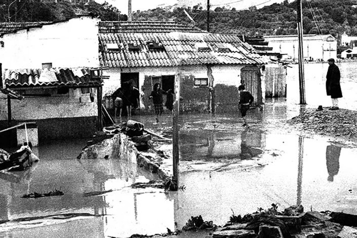 Aquilo a que milhares de operários chamavam casa eram na verdade barracas em zonas baixas e permeáveis a inundações, construídas pelos próprios com madeira e lata, e chão de terra. No lugar de Quintas, João Manquinho, morador de Vila Franca de Xira, conta que algumas já eram casas de tijolo mas, além de estarem situadas no vale, tinham sido construídas sobre as linhas de água, por descuido ou desconhecimento.