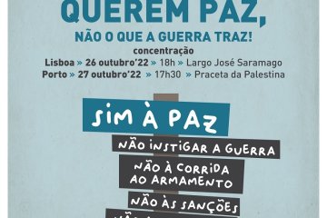 Em defesa da paz, do diálogo, da amizade e da cooperação, estão agendadas concentrações para a próxima semana em Lisboa (26 de Outubro, 18h, Largo José Saramago) e no Porto (27 de Outubro, 17h30, Praceta da Palestina).