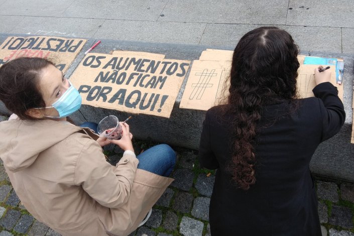 Estudantes da Invicta protestaram esta tarde, na Praça dos Leões, em frente à Reitoria da Universidade do Porto contra o aumento do valor das propinas de mestrado na Faculdade de Ciências.