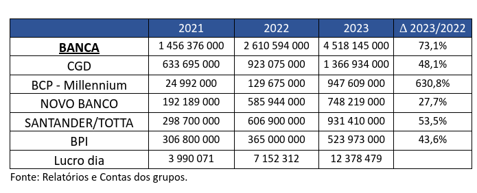 Mesmo não abordando o papel da UE na compressão dos salários, que se expressa entre outros, nas recomendações ao nível do denominado «Semestre Europeu», aquilo que 2023 deu a conhecer foi, ao mesmo tempo que o garrote apertou para milhares de famílias que contraíram empréstimos para exercer o direito à habitação, os cinco maiores bancos acumularam 12 milhões de euros em lucros por dia, num total de 4,5 mil milhões de euros, mais 73% que em 2022.
