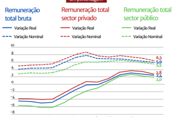 O que podemos ver na figura 1, apesar do aumento de salário no sector privado ser maior, é que os trabalhadores de ambos os sector perdem, percentualmente, o mesmo com a inflação. Se analisarmos a figura 1, em Setembro de 2023, os trabalhadores de ambos os sectores perderam 3,5% no valor dos seus salários, apesar de haver uma diferença de 0,8 ponto percentuais no valor real dos salários.