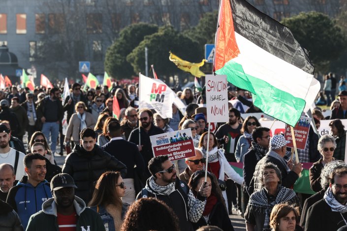«Cortem nas armas, subam nos salários», «Paz no Médio Oriente, Palestina Independente» ou «Israel é culpado por um povo massacrado» foram algumas das palavras de ordem ouvidas, esta tarde, enquanto os manifestantes caminhavam entre o Cais do Sodré e o Rossio.