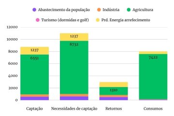 Quanto às «necessidades», ao caudal captado foram subtraídos os retornos, isto é, a parte que volta à natureza em estado líquido.