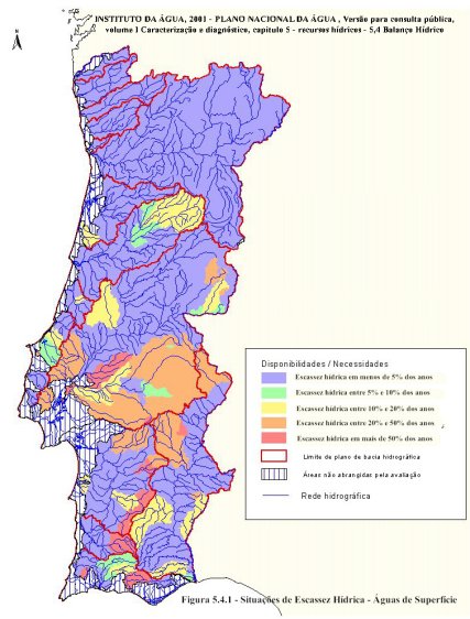 Atente-se o aumento de «disponibilidade» pela consideração de uma boa gestão pública das albufeiras existentes, orientada para a regularização – guardar água dos períodos mais húmidos para os mais secos. Este panorama é a caracterização do estado em 2000, mas entra provavelmente em conta com a albufeira do Alqueva, que estava já em construção mas só em 2002 encerrou as comportas.