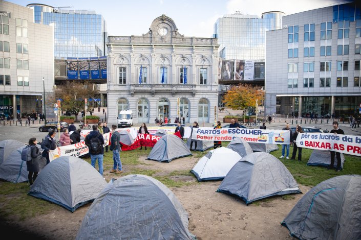 Ao AbrilAbril, André Escoval, membro do Porta a Porta relatou que na acção foram colocadas «vinte tendas com reivindicações dirigidas às instituições europeias e também ao Governo do país».