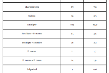 No quadro seguinte apresenta-se a área (ha) e % dos habitats e formações vegetais na localização do aeroporto no CTA.
