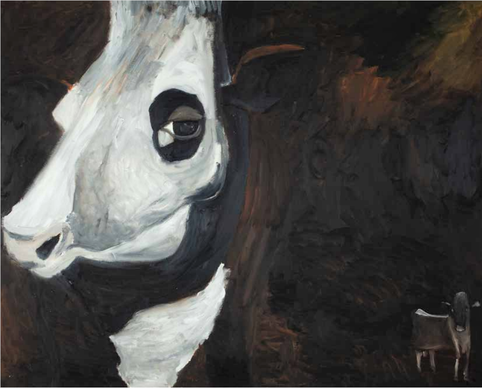 Como ponto de partida para esta exposição, a artista sugere-nos que uma das suas referências foi John Berger (filósofo e escritor) e em particular algumas das frases que ele escreveu no texto Why Look at Animals? em que propõe percebermos a forma como os animais nos olham, sendo apenas connosco, a espécie humana, que o reconhecimento desse olhar é familiar. Essa familiaridade é também referida no texto de João Silvério quando ele diz que as «…duas obras intituladas Vaca I e Vaca II, talvez animais que habitam a paisagem em que a artista vive, são representadas como se fossem imagens de uma memória cinematográfica, nessa profundidade de campo, como uma espécie de trompe l’oeil que emudece a tentação do mero retrato daqueles animais.»